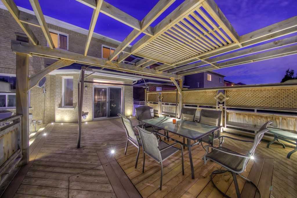 Large Family Home W/Open Plan Offers Lots Of Privacy On Rare Oversized Pie-Shaped Lot. Many Upgrades,Main Floor Den/Office, 9Ft Ceilings, Eat-In Kitchen, 3 Spacious Bdrms 4 Baths, Walk-Out To Beautiful Cedar Deck With Pergola & Inlaid Landscape Lighting, Interlock, Backs On To Green Space. Large Finished Basement: 2Pc Has Shower Rough-In, Room To Add Kitchenette, Sound Proofed High Ceiling, Recessed Lighting, Mat Floor Keeps It Warm. Mins To Toronto.