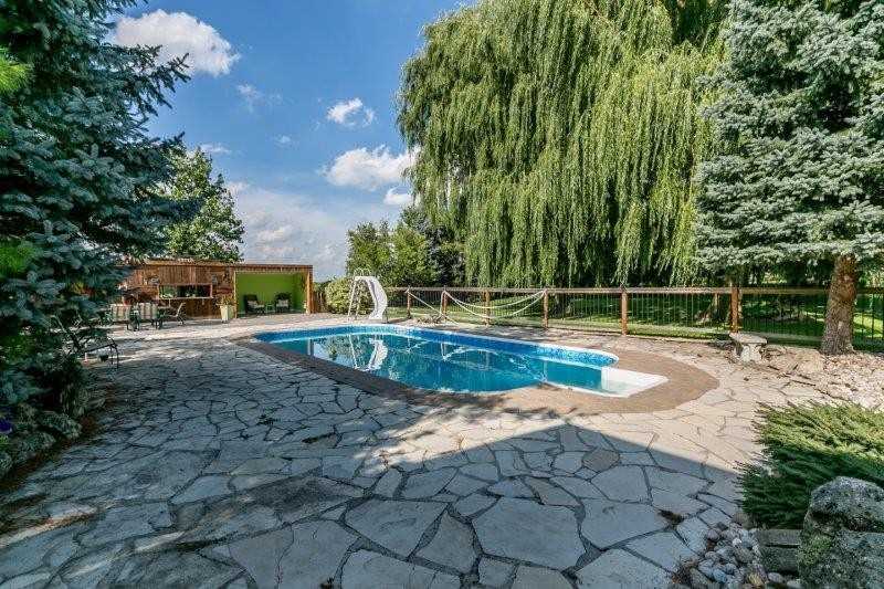 Piece Of Paradise! This One Of A Kind Property Feat A Custom Log Home On Approx. 2 Acres W/Backyard Oasis, Lrg Workshop & An Out Of This World Shed! Main Home Feat Vaulted Ceilings, Lrg Principle Rms, Hdwd Flrs, Updated Baths, Spacious Kitchen, Mud Rm W/Ample Storage, Fin Bsmt W/2nd Kitchen, 3 Bdms & W/O To Backyard Retreat! Entertain In Style In The Gazebo, Hot Tub, Pool & Cabana - Wow! Conveniently Located Close To All Amenities & The Hwy - A Must See!