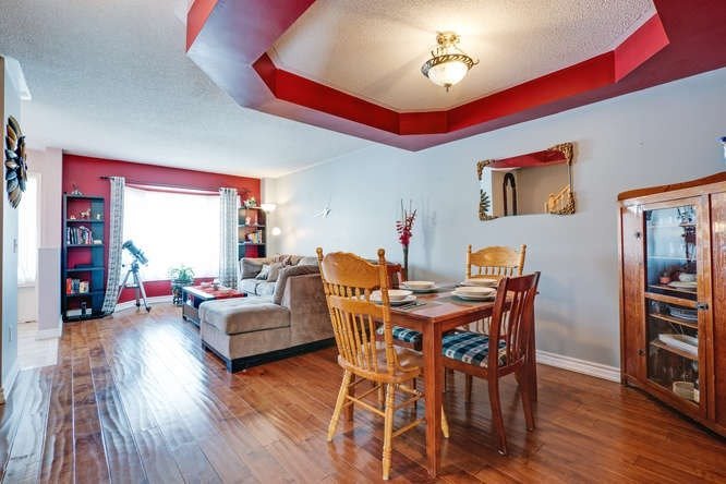 Don't Miss This Opportunity To Get In To The Very Desirable Amberlea Community. Boasting Top Schools, Shopping, Restaurants & Transit, All In Walking Distance. Front Entry Opens To A Spacious Living/Dining Area With Gleaming Hardwood Flr, Bay Window & Coffered Ceiling. Huge Family Size Kitchen With Breakfast Bar And W/O To Sun Filled Deck With Pergola. Master Br With 3 Pc Ensuite & W/W Closet. Finished Entertainers Bsmnt With Ceramic Floor & Potlights.