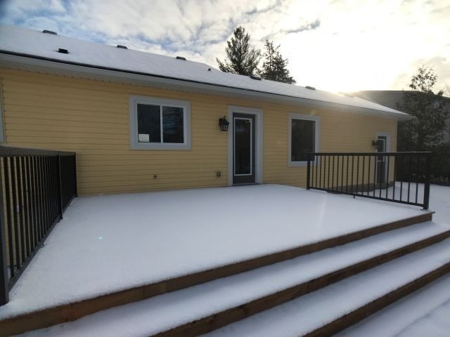 A Little Bit Of Country. A Rustic Beam, Live Edge Island Counter Top, And Brick Accent Wall All Add To This Charming Country House. Surrounded By Mature Trees, Armor Stone Rocks And Landscaping Shape The Exterior Of The House. Featuring An Open Concept Kitchen/Living Room With Backyard Yard Excess And View Of Patio Deck.
